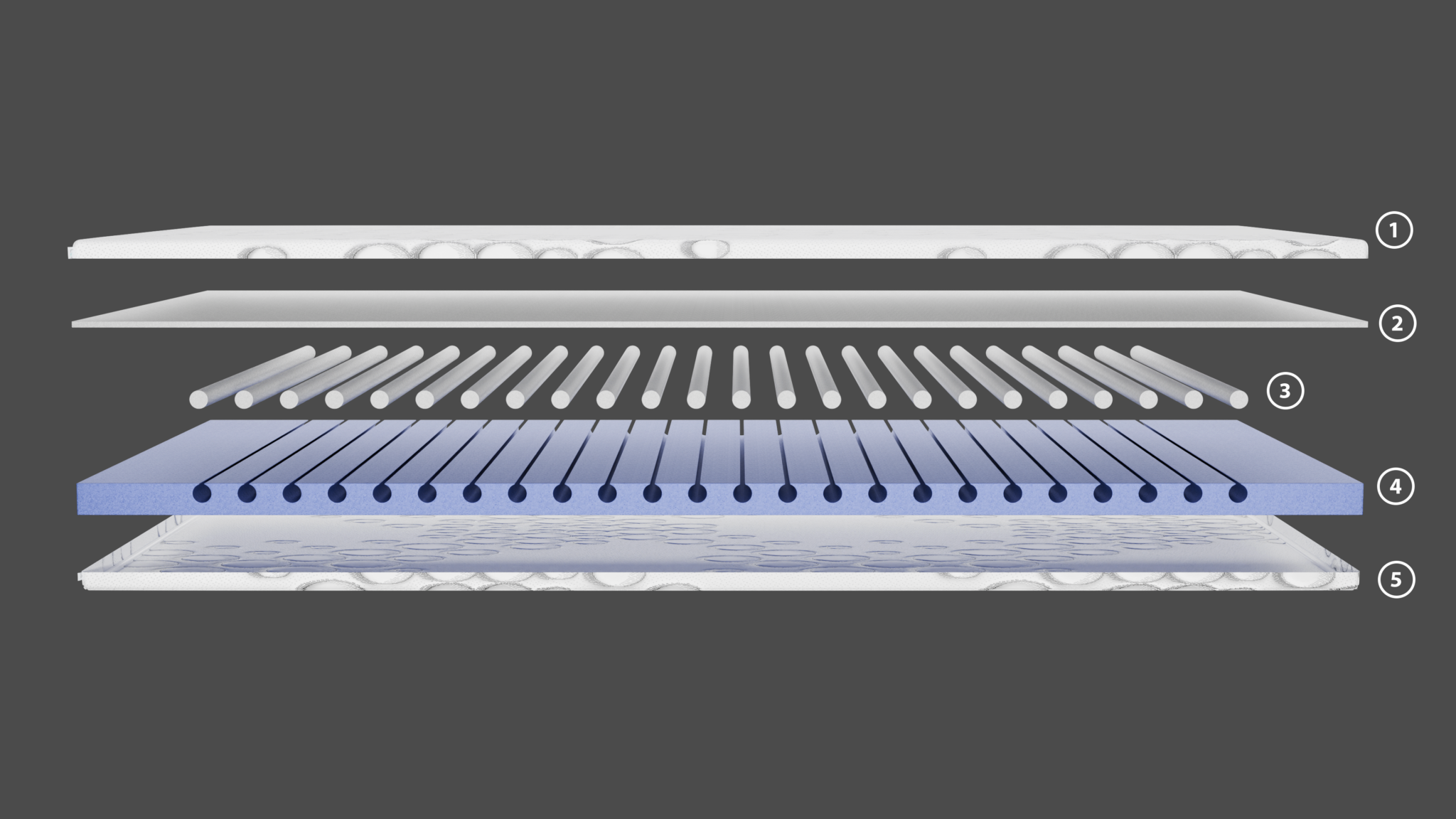 Die Ergo-Zylinder bestehen aus HR-Schaum und speziellem PU-Schaum, die sorgfältig in 5 Zonen gruppiert sind, um eine korrekte Ausrichtung der Wirbelsäule zu unterstützen und Druckpunkte zu entlasten, für einen erholsamen und guten Schlaf.
