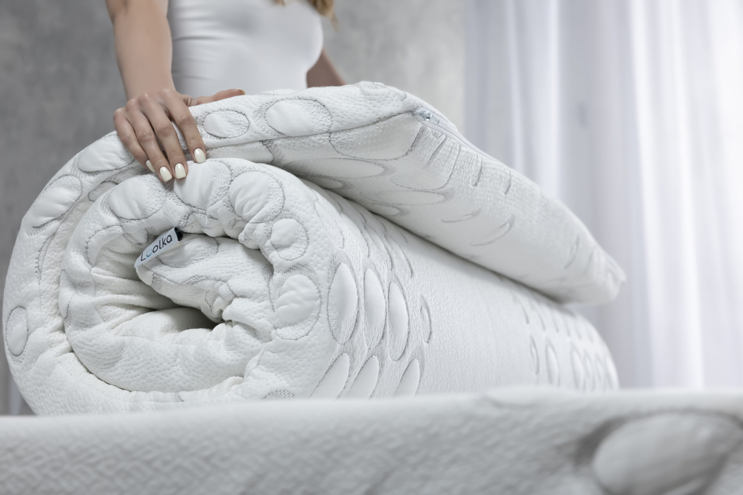 Wählen Sie entweder die weiche weiße Seite, um sich an druckfreies Schlafen zu gewöhnen, oder drehen Sie den Kern um, um die festere blaue Seite mit flexibler und dennoch stabiler Unterstützung zu erleben. Einfach umzuschalten durch Öffnen des Reißverschlusses und Wenden des Kerns.