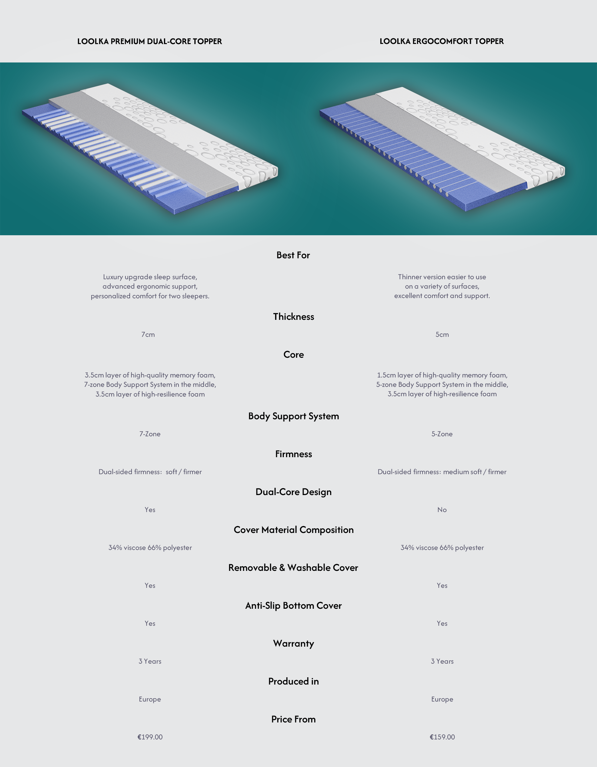 Loolka Topper bieten dort extra Halt, wo dein Körper ihn am meisten braucht – für eine spürbare Entlastung im Schlaf.